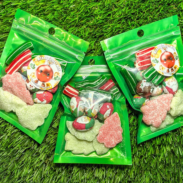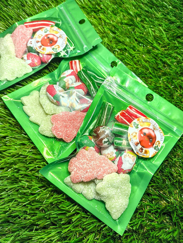 A mini pouch crammed with a selection of Christmas sweets. The labels can be personalised with your choice of greeting or name, just select the personalised option from the dropdown and we will be in touch after you order.
